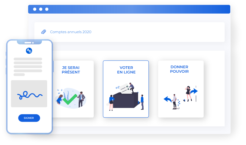 Organisez vos AG en toute simplicité, à distance, en présentiel ou en mode hybride.